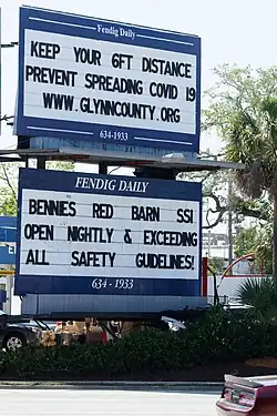 - ^ "'Trump COVID Superspreader Event' billboard appears before another MAGA rally". wtsp.com. October 15, 2020. Archived from the original on January 5, 2021. Retrieved October 31, 2020.