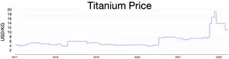Demand for titanium is high because defense spending increases on and resulting from the Russo-Ukrainian War, parts for aircraft makers and defense contractors; additionally, automotive industry demand for titanium dioxide pigments remains high.