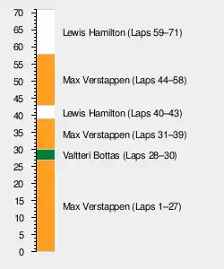 The race was won by Hamilton, with Verstappen and Bottas completing the podium, and Pérez setting the fastest lap.[13]