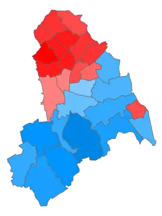 ![]() Map showing the results of the 2022 Croydon London Borough Council election. Labour in red, Conservatives in blue, Greens in green and Liberal Democrats in amber. | ||||||||||||||||||||||||||||||||||||||||||||||||||||||||||||||