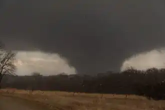 ![]() The Winterset EF4 tornado at peak intensity to the southwest of town. | |