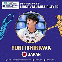 - ^ Preechachan (27 August 2023). "JAPAN POWER PAST IRAN IN THRILLING THREE-SETTER TO REIGN SUPREME AT 22ND ASIAN SENIOR MEN'S CHAMPIONSHIP". Asian Volleyball Confederation. Archived from the original on 27 August 2023. Retrieved 27 August 2023.