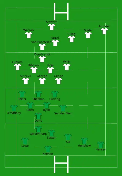 | Try: Sheehan (2) 32' c, 67' c Henshaw 61' c Herring 76' m Con: Sexton (3/3) 34', 62', 69' Pen: Sexton (1/1) 18' | Report | Try: George 72' c Con: Farrell (1/1) 72' Pen: Farrell (3/3) 7', 14', 50' |