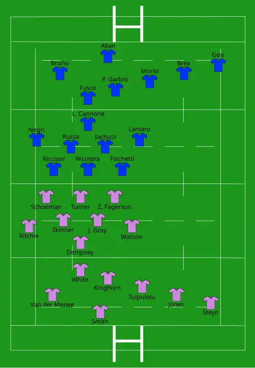 | Try: Van der Merwe 12' m Kinghorn (3) 29' c, 43' c, 80' c Con: Kinghorn (3/4) 30', 45', 80+1' | Report | Try: Allan 61' m Pen: Allan (2/2) 7', 15' P. Garbisi (1/1) 65' |