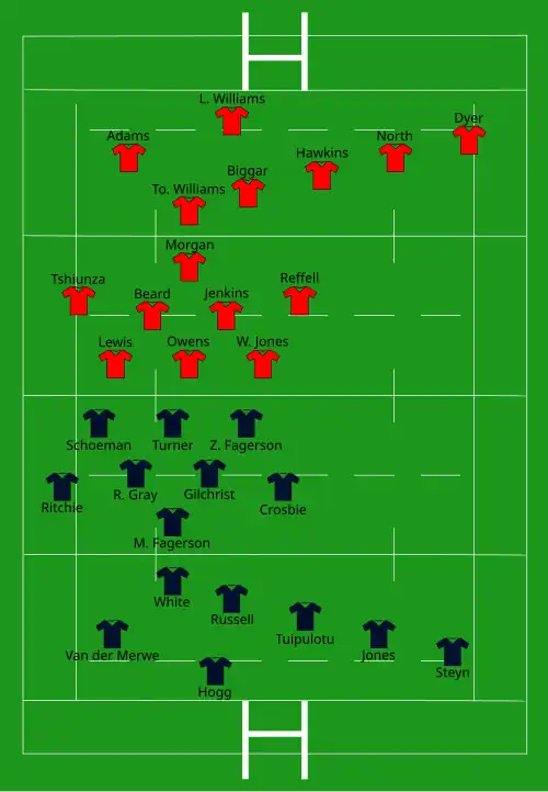 | Try: Jones 16' c Con: Russell (1/1) 17' | Report | Try: Hansen 27' m Lowe 56' c Conan 61' c Con: Sexton (2/3) 57', 62' Pen: Sexton (1/1) 12' |