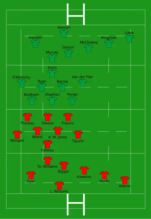 - Cian Healy (Ireland) was originally named among the replacements, but withdrew on the day of the match due to injury. His place was taken by Dave Kilcoyne.[8]