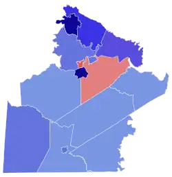 McClellan: 50–60% 60–70% 70–80% 80–90% >90% Benjamin: 50–60% 60–70% 70–80% 80–90% Tie: 40–50% No Votes | |||||||||||||||||