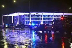 In the house rented by Luiz in Ceilândia, the Federal Police found inscriptions with references to the attacks of 8 January 2023 in Brasília and a bomb plan.[22] A drawer in the room exploded when it was opened by a bomb disposal robot.[23] In addition to the house and car, federal police located a trailer rented by the perpetrator of the explosions, which was also in the Annex IV parking lot of the Chamber of Deputies. Inside the vehicle, the Federal Police found, in addition to clothes, money, tools and other objects, a cell phone, more explosives and a cap with Jair Bolsonaro's campaign slogan, "Brazil above everything, God above everyone".[7][24][25] The searches of the residence and trailer were authorized by the STF minister, Alexandre de Moraes.[26]