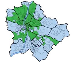 Green denotes districts won by Karácsony, while light blue denotes districts won by Vitézy. | |||||||||||||||||||