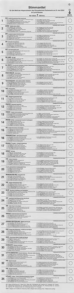 - ^ "Europawahl 2024: Der Bundeswahlausschuss lässt 35 Parteien und sonstige politische Vereinigungen zu". Die Bundeswahlleiterin. Retrieved 30 March 2024.