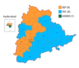 - ^ The Hindu (4 June 2024). "Telangana Election Results 2024 Highlights: BJP, Congress win 8 seats each; MIM bags 1". Archived from the original on 4 June 2024. Retrieved 4 June 2024.