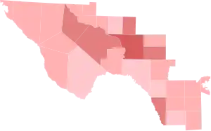 County results Gonzalez: 50–60% 60–70% 80–90% >90%Flores: 50–60% 60–70% 70–80% 80–90%Tie: 50%