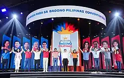 On September 26, President Marcos announced the administration's twelve senatorial bets during an event at the Philippine International Convention Center in Pasay.[46] Although Imee Marcos, the president's sister, was introduced as part of the slate, she stated that she would not be joining the slate and would instead be running as an independent.[47] Despite her statement, she was never formally dropped from the slate, and was even shown campaigning with the alliance at the start of the campaign season.[48]