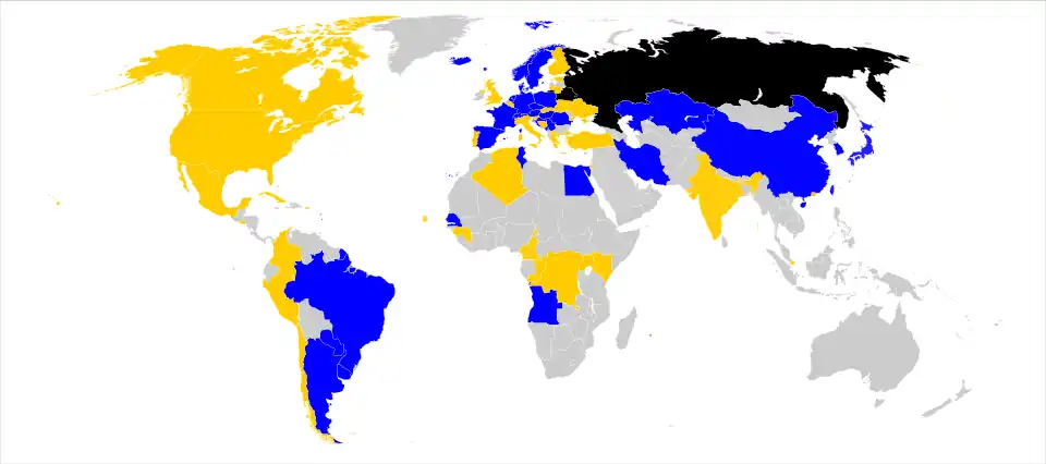 - ^ The reigning world champion automatically qualifies for the next World Championship and, as a rule, is placed first in the first performance row. In case the reigning world champion is also hosting the next World Championship, the confederation of the reigning world champion obtains one additional performance place.