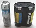 ![]() | CR-P2 | BR-P2 223A CR17-33 5024LC | CR-P2 | 5024LC[141] | 1,500 | 6 | Double cylinder. Keyed. | Both on one end. Terminal diameter: 8.7 mm Terminal center spacing: 16.8 mm. | H: 36 mm L: 35 mm W: 19.5 mm | Shaped so that it can be inserted into a battery compartment only one way. Typical mass: 37 g. They contain two 3 V cells exchangeable with CR123 cells. |