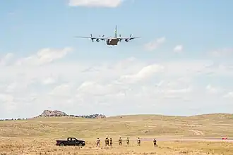 ![]() 243rd ATCS members watch as a C-130 Hercules under their control departs a dirt airstrip during an exercise, 2020 | |