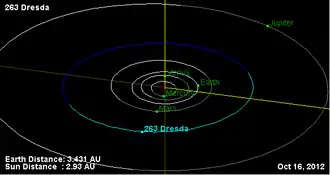 1. ^ "263 Dresda". JPL Small-Body Database. NASA/Jet Propulsion Laboratory. Retrieved 11 May 2016.
