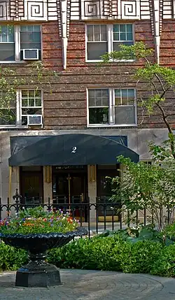 On April 1, 1929, the real estate development firm Bing & Bing – founded in 1906 by brothers Leo S. Bing and Alexander Bing[4] – announced that they had quietly acquired 75 small lots and old buildings largely around Abingdon Square, Sheridan Square and Jackson Square Park, on Horatio, West Twelfth and Christopher Streets, sufficient to build five high-end residential buildings in a concerted effort to "recreate" the Greenwich Village neighborhood.[5] In addition to 2 Horatio Street, the project would result in 299 West 12th Street,[6] 59 West 12th Street,[7] 302 West 12th Street,[8] and 45 Christopher Street.[9]