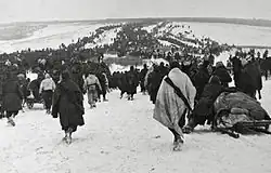 On the evening of 17 January 1943, the Alpine Army Corps commander, General Gabriele Nasci, ordered a full retreat. At this point only the 2nd Alpine Division "Tridentina" was still capable of conducting combat operations. The 40,000-strong mass of stragglers — Alpini and Italians from other commands, plus German and Hungarians — followed the "Tridentina", which led the way westwards to the new Axis lines. As the Soviets had already occupied every village, bitter battles had to be fought to clear the way. By morning of 28 January the "Cuneense" had walked 200 km, fought 20 battles, lost 80% of its men and spent 11 nights camped out in the middle of the Russian Steppe. Temperatures during the nights were between -30 °C and -40 °C. On 28 January the last remnants of the division were overrun by Cossack forces.[5][7][21][22][24]