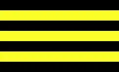 The officers and men of the regiment wore the Duke of Atholl's Tartan, Murray of Atholl, in various forms of dress.[23] However, the pipers (known as trumpeters on the establishment) wore the Tullibardaine Tartan.[24] The stable belt was black with three gold stripes – colours taken from The Duke of Atholl's arms.[25]