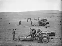 Howitzers of the 79th (The Scottish Horse) Medium Regiment during a training exercise, Banffshire, Scotland (May 1941)