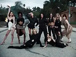 The music video for "360" ends with (clockwise) Hari Nef, Quenlin Blackwell, Chloë Sevigny, Charli XCX, Peri Rosenzweig, Isamaya Ffrench, Tess McMillan, Gabbriette, and Alex Consani all striking poses in the street.