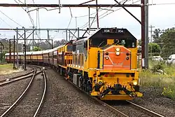 The 44 class are a class of diesel locomotives built between 1957 and 1968 by AE Goodwin for express passenger and freight train haulage. 4401 is a member of Transport Heritage NSW's heritage collection[19] and was in 3801 Limited's custody from 1995 to 2017.