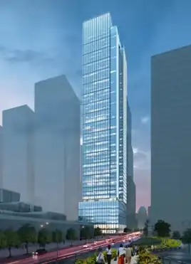 Construction was supposed to begin in 2015,[6] with the building's completion planned for 2017.[6][7][8] The building, directly across Eleventh Avenue from the Jacob K. Javits Convention Center, would abut the secondary entrance to the new 34th Street – Hudson Yards subway station, built as part of the New York City Subway's 7 Subway Extension project.[9][10] Consequently, the foundation was built by the Metropolitan Transportation Authority because the subway station is directly underneath; the rest of the building would be built by Moinian Group.[11] The foundation works started May 2016.[12]
