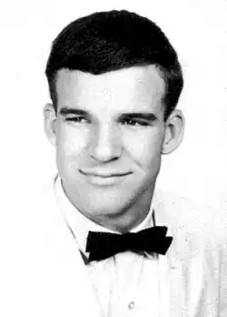 Martin is of English, Scottish, Welsh, Scots-Irish, German, and French descent. He and his sister grew up in a Baptist family in Inglewood, California, and later in Garden Grove in Orange County;[11] he was a cheerleader at Garden Grove High School.[12] One of Martin's earliest memories is seeing his father as an extra serving drinks onstage at the Callboard Theater on Melrose Place in West Hollywood. During World War II in Britain, his father appeared in a production of Our Town with Raymond Massey. Expressing his affection through gifts like cars and bikes, Steve's father was stern and not emotionally open to his son.[13] He was proud but critical, with Steve later recalling that in his teens his feelings for his father were mostly of hatred.[14]