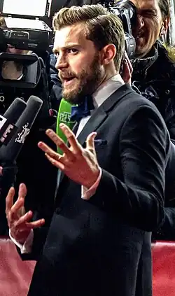 During October 2013, actress Jennifer Ehle was in talks for the role of Anastasia's mother Carla.[6] On October 12, 2013, Universal Pictures announced that Hunnam had exited the film due to conflicts with the schedule of his FX series Sons of Anarchy.[4] Alexander Skarsgård, Jamie Dornan, Christian Cooke, Theo James, François Arnaud, Scott Eastwood, Luke Bracey, and Billy Magnussen were at the top of the list to replace Hunnam as Christian Grey.[50][51] Finally, on October 23, 2013, Dornan was cast as Christian Grey.[52] On October 31, 2013, Victor Rasuk was cast as José Rodriguez, Jr.[8] On November 22, 2013, Eloise Mumford was cast as Kate Kavanagh.[5] On December 2, 2013, singer Rita Ora was cast as Christian's younger sister Mia.[53] Ora originally wanted to work on the soundtrack.[54] On December 3, 2013, Marcia Gay Harden was cast as Christian's mother, Grace.[7]