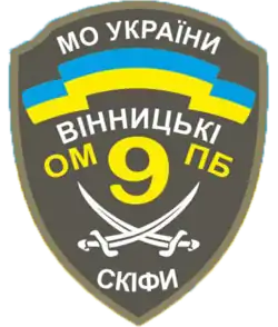 The main units of the 59th Brigade were deployed to a camp in the Oleshky Sands at the onset of the Russian invasion of Ukraine. Vastly outnumbered by Russian forces advancing from Crimea, most of the brigade withdrew over the Dnieper River to Mykolaiv, where it took part in the city's defense. The 9th "Vinnytsia Scythians" Battalion was sent to cover Melitopol in the early hours of the invasion, and its commander, Serhii Kotenko, was later killed in action near Zaporizhzhia on 9 March 2022.[3][4][5]