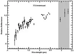 - ^ a b Ai, Kanno. (2002) Astronomical Herald Photometric and Near-IR Spectroscopic observations of a D-type asteroid, (773) Irmintraud, by SUBARU/IRCS. Archived 2011-10-01 at the Wayback Machine VOL.95; NO.11; PAGE.507-514. Accession number: 02A0834926; Japanese language Journal Code: F0543A; ISSN 0374-2466