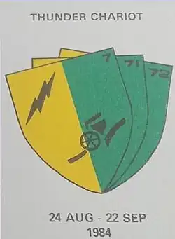 7 Division's major training exercises were held at Lohatla Army Battle School in the Northern Cape, called Quick Silver and Thunder Chariot, one of the most notable was the Thunder Chariot of 1984:[7]