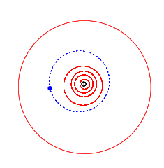 ![]() Orbits of GNU (blue), the inner planets and Jupiter (outermost) | |