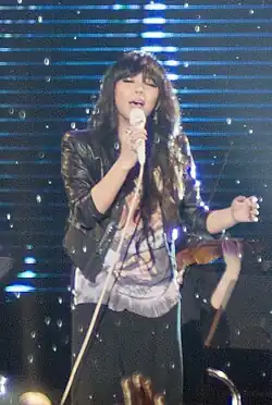 At the end of March 2009, the Star World Tour ended at the Taipei Arena.[186] The tour lasted a year and five months and held 20 performances in 13 cities, attracting an audience of 500,000 spectators.[186] A-Mei became the first Chinese singer to perform five consecutive concerts with the same theme at the Taipei Arena.[187] She released her fifteenth studio album, Amit, on 26 June 2009, which was her very first album to be released under her aboriginal birth name.[188] This album showed a significant change in the genre of music A-Mei sung, as most of the songs incorporated hard rock music. The songs in the album extensively touch on serious topics such as personality conflicts, lost family ties, human sexuality, female consciousness, homosexuality, among others. The commercially successful album sold over 120,000 copies in Taiwan and topped the G-Music charts for three nonconsecutive weeks, while sales across Asia exceeded 1.3 million.[189] On 5 September 2009, she became the spokesperson for the 2009 Summer Deaflympics held in Taipei and participated in the opening ceremony as a guest, singing the theme song "Dreams You Can Hear (聽得見的夢想)."[190] In November 2009, she embarked on her fifth concert tour, Amit First Tour, which visited Taiwan, Mainland China, Hong Kong, Macau, Japan, Singapore, and Malaysia. In March 2010, she was paid nearly ten million yuan to become the spokesperson of Coca-Cola in Taiwan.[191] At the 21st Golden Melody Awards, A-Mei became the most decorated artist that night with the album Amit winning a total of six trophies.[192] The last time A-Mei had received a major Golden Melody Award was when she won the Golden Melody Award for Best Female Mandarin Singer in 2002 for her album Truth eight years prior.