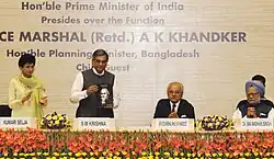 During the tenure of the immediate past Government of 2001–2006, Khandker is credited as the main architect of establishing the "Sector Commanders Forum"[6] by organising Sector and Sub-Sector Commanders of the liberation war that waged strong movement against pro-Jamat and other alleged war criminals. He was awarded the Independence Award for 2011.[7] Khandker was appointed as the Bangladesh High Commissioner in Australia and served the mission during 1976–1982.[3] Later on, he became the Bangladesh High Commissioner in India for the period 1982–1986.[3] In 1986, he was appointed as Adviser to the President and thereafter he served the nation as the Planning Minister up to 1990.[3] He was elected as a member of parliament in 1998 and 2009 from the Pabna-2 constituency (Sujanagar Upazila). In 2009, he had been inducted as a full cabinet minister and given the charge of the Minister, Ministry of Planning.