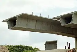 The viaduct is a 538 ft (164 m) twin-box girder and has central span of 230 ft (70 m) and 150 ft (46 m) side spans, constructed by the balanced cantilever method. It was constructed in segments, each weighing between 54 tons for plain segments and 93 tons for the main segments.[12]