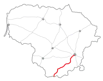 Most of the road has one lane per each direction and default 90 km/h speed limit.[1] It is the main road connecting Vilnius with the Dzūkija region.