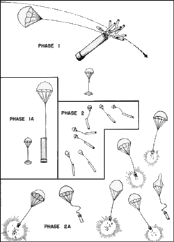 - Unrotated projectile a British rocket launched parachute aerial mine system for ship defence.