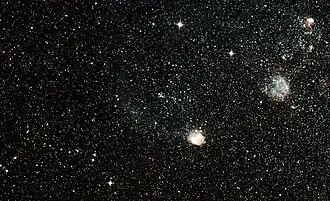 - ^ Lindsay EM (1958). "The cluster system of the Small Magellanic Cloud". Monthly Notices of the Royal Astronomical Society. 118 (2): 172–182. Bibcode:1958MNRAS.118..172L. doi:10.1093/mnras/118.2.172.