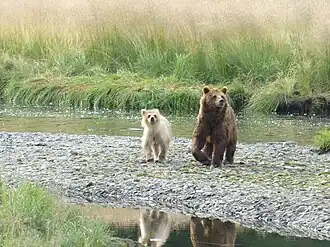 This brown bear retains all of the physical attributes and behavior associated with the brown bear, however, they do carry mitochondrial DNA that shows a match closer to polar bears than brown bears.[5]