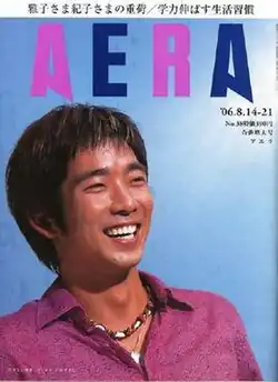 The cover story is called Person in Focus. Eiichirō Sakata takes cover photos for Aera, and since the person on the cover is the photographer, it is a self-portrait.