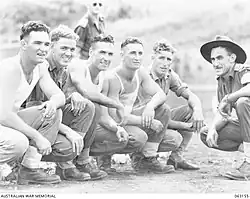 In May 1943, serving in the Territory of Papua during the New Guinea campaign began an informal league which were among the earliest recorded matches in Papua New Guinea. The league consisted of teams including Konedobu, Wirraways, Razorback, Strafers, Wallabies, Pioneers, Bower Birds, Ack-Redians, John's Gully.[4][5] On 29 April 1943, an RAAF team held a secret training session.[6] Its first match was held that weekend on the 1st May.[7] Another higher profile match was held on the 5 May 1943 featuring several notable Australian players.[8] On Saturday 22 May 1943, RAAF Wirraways 13-10 defeated Razorback 9–8.[9] On the 30 May 1943, John's Gully R.A.A.F. Australian Rules football team against a Waigani Road team at the Gully Oval, the R.A.A.F. Wirraway Australian Rules football team also called for opponents.[10] Other teams included Regiment and Con. Depot.[11]