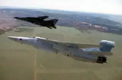 - AN/ALQ-99E – The version mounted on the EF-111A, a heavily modified variant of the F-111A introduced in 1977. The jamming equipment was mostly stored on the underside of the aircraft in the bomb bay, while the receiving equipment was mounted to the vertical stabilizer, similarly to the EA-6B. It featured a 70% commonality with the AN/ALQ-99F ICAP II. Introduced increased computer automation, allowing the jamming systems to be handled by a single crewmate, as opposed to a crew of 3 on the EA-6B. The ALQ-99E underwent several improvements through the late 1980's and early 1990's, including expanded coverage to include band 10, increased computer memory and processing power, and the improved Universal Exciter.[6]
