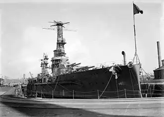 When Moreno returned to Argentina in August 1926, it was initially assigned to the training division of the Navy before being reassigned to the First Division. In 1932, Moreno was moved into a new Battleship Division with Rivadavia. The remainder of the 1930s was filled with diplomatic cruises.[30] Moreno, escorted by the three Mendoza-class destroyers, brought Argentine president Agustín Pedro Justo to Brazil in 1933 for a major diplomatic visit.[30][31] Departing in the afternoon of 2 October, he arrived in Rio de Janeiro on the morning of 7 October to huge celebrations. Brazilian ships of the first and second squadrons, along with three squadrons worth of warplanes, met Moreno at sea and escorted it to the harbor. When Justo landed and traveled by car to Guanabra Palace, the road was flanked by a plethora of army and naval forces along with thousands of citizens. Rio was described as "ablaze with light", and a 95-foot (29 m) high imitation of France's Arc de Triomphe was erected, onto which various colors were projected.[32] Justo then took a royal train, originally designed for Albert I of Belgium's use during Brazil's 1922 centennial celebrations, to São Paulo. After three days, he traveled to Santos, where he boarded Moreno to travel first to Uruguay, then back to Argentina; he arrived in the latter on 22 October.[30][33]