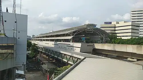 ASEAN Station (formerly Sisingamangaraja Station) is a rapid transit station on the North-South Line of the Jakarta MRT in Jakarta, Indonesia. The station is located in the Gunung area, Kebayoran Baru, South Jakarta and is built on Jalan Sisingamangaraja XII. This station is the northernmost elevated station for the first phase of the Jakarta MRT project before entering the underground line. It is located between Senayan Mastercard and Blok M BCA stations, and has the station code SSM. The station is located not far from the Secretariat of the Association of Southeast Asian Nations. The station is connected to the CSW-ASEAN TOD for Transjakarta's Corridor 13 service via a pedestrian bridge that has been in operation since December 2021.[2] The station has only two railroad tracks and has no switches.