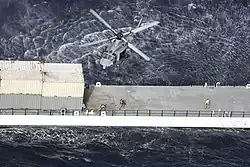 On April 4, 2013, ATLS-9701 was used by the members of the 13th MEU Maritime Raid Force, who fast-roped onto her from a CH-46 helicopter during VBSS training.[4] On January 11, 2015, the 15th MEU Maritime Raid Force exercised their boarding skills on the ATLS-9701 in San Diego Bay during interoperability training.[5]