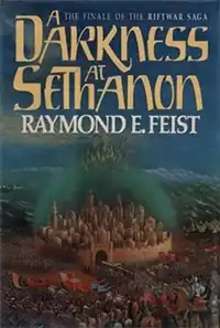 A Darkness at Sethanon is a fantasy novel by American writer Raymond E. Feist, the third and final book in The Riftwar Saga, the first series of novels in The Riftwar Cycle . It describes how Murmandamus, a new prince of the Dark Brotherhood, marshals the forces of the Moredhel and invades the kingdom, with the intent of finding the Lifestone, a powerful relic with which he will be able to destroy every living thing in the world, so as to resurrect the Valheru Lords of old. Only Pug and Tomas can stop this new evil, thereby ending the Riftwar.