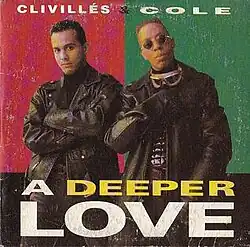 "A Deeper Love" is a song written by American producers Robert Clivillés and David Cole, and performed by them as Clivillés & Cole featuring vocals by Deborah Cooper. Released by Columbia Records in 1991, the song was the duo's fifth number-one on the US Billboard Hot Dance Club Play chart.[1] On other US charts, "A Deeper Love" peaked at number 83 on the soul singles chart and number 44 on the pop chart.[2] Overseas, especially in Europe the single charted higher, going to number 15 in the UK and number eight on the Dutch Top 40.[3]