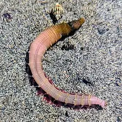 Abarenicola pacifica or the Pacific lugworm is a large species of polychaete worm found on the west coast of North America and also in Japan. The worms live out of sight in burrows under the sand and produce casts which are visible on the surface.